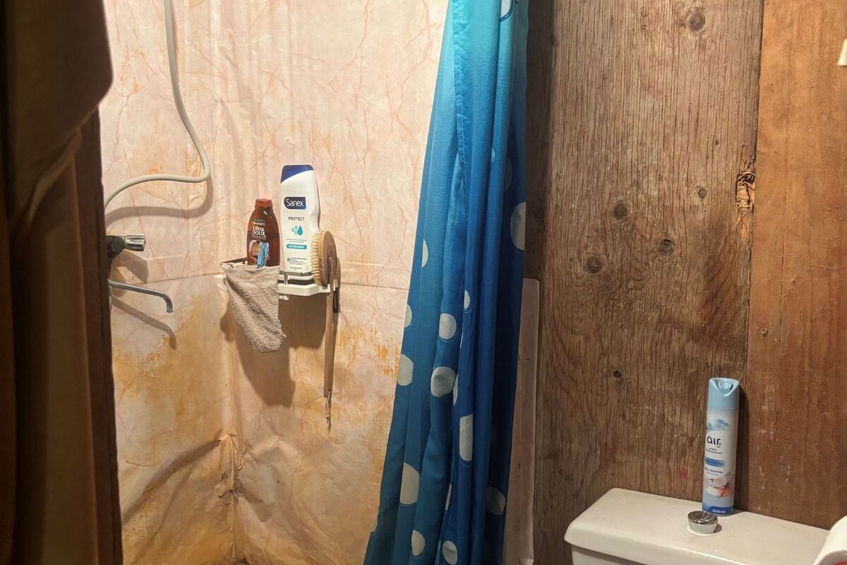 Naast de keuken bevindt zich een halletje met trap, trappenkast, een tweede ingang via de schuurdeur en een deur naar de eerste slaapkamer met wasmachineaansluiting, tijdelijke badkamer (douche en wc).