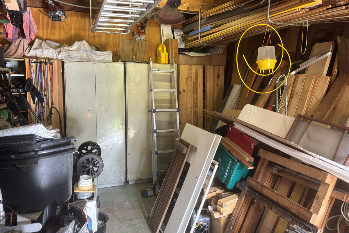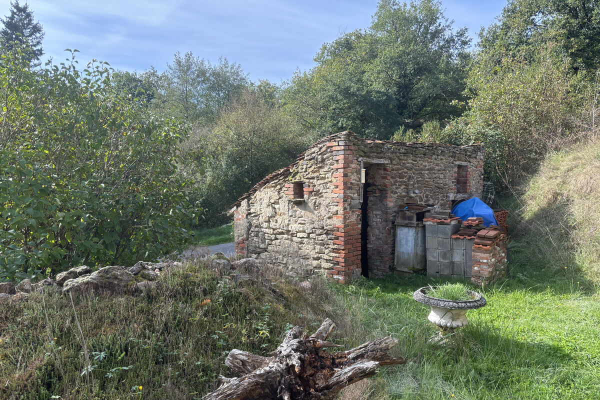 Er is een kelder, een waterput, verschillende opslagruimtes voor hout en tuingereedschap, twee zonnepanelen en een schuur met betonnen vloer.