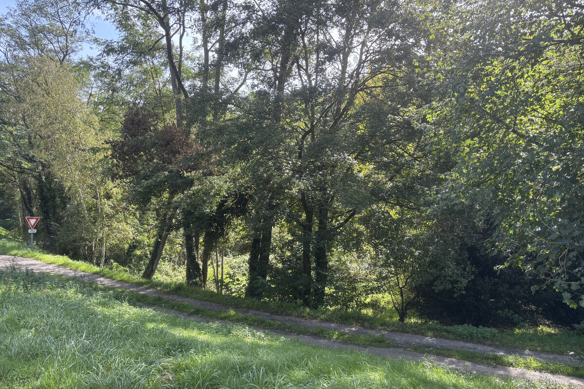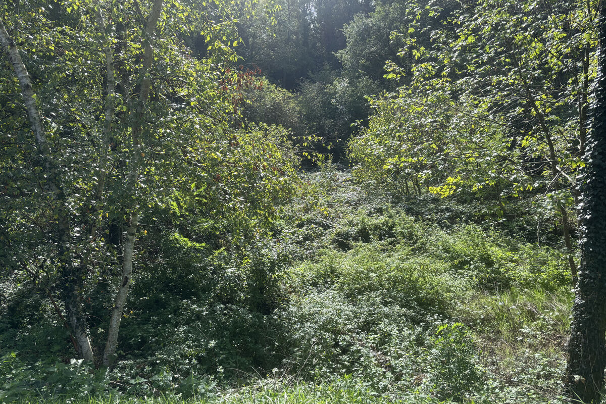 De woning ligt op een perceel van 1,8 hectare, waarvan het grootste deel achter het huis ligt (hellend en bebost) en een kleiner gedeelte aan de overzijde van de weg.