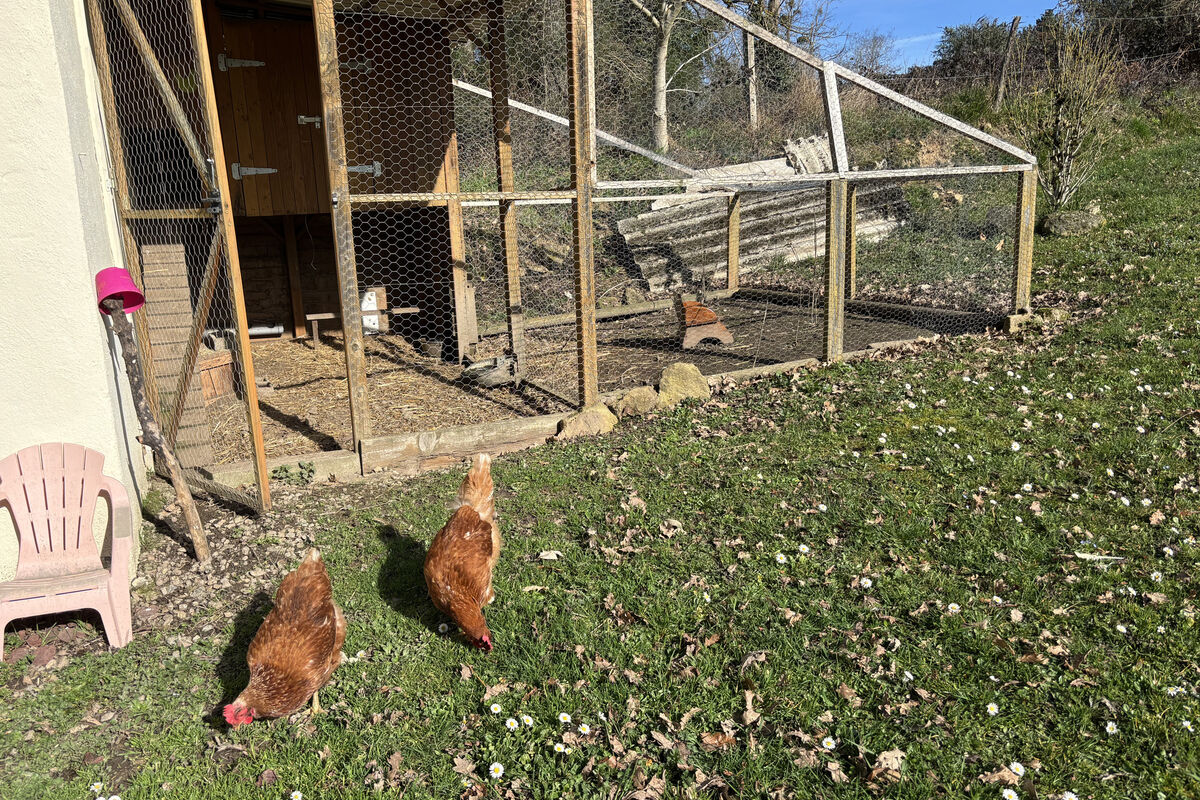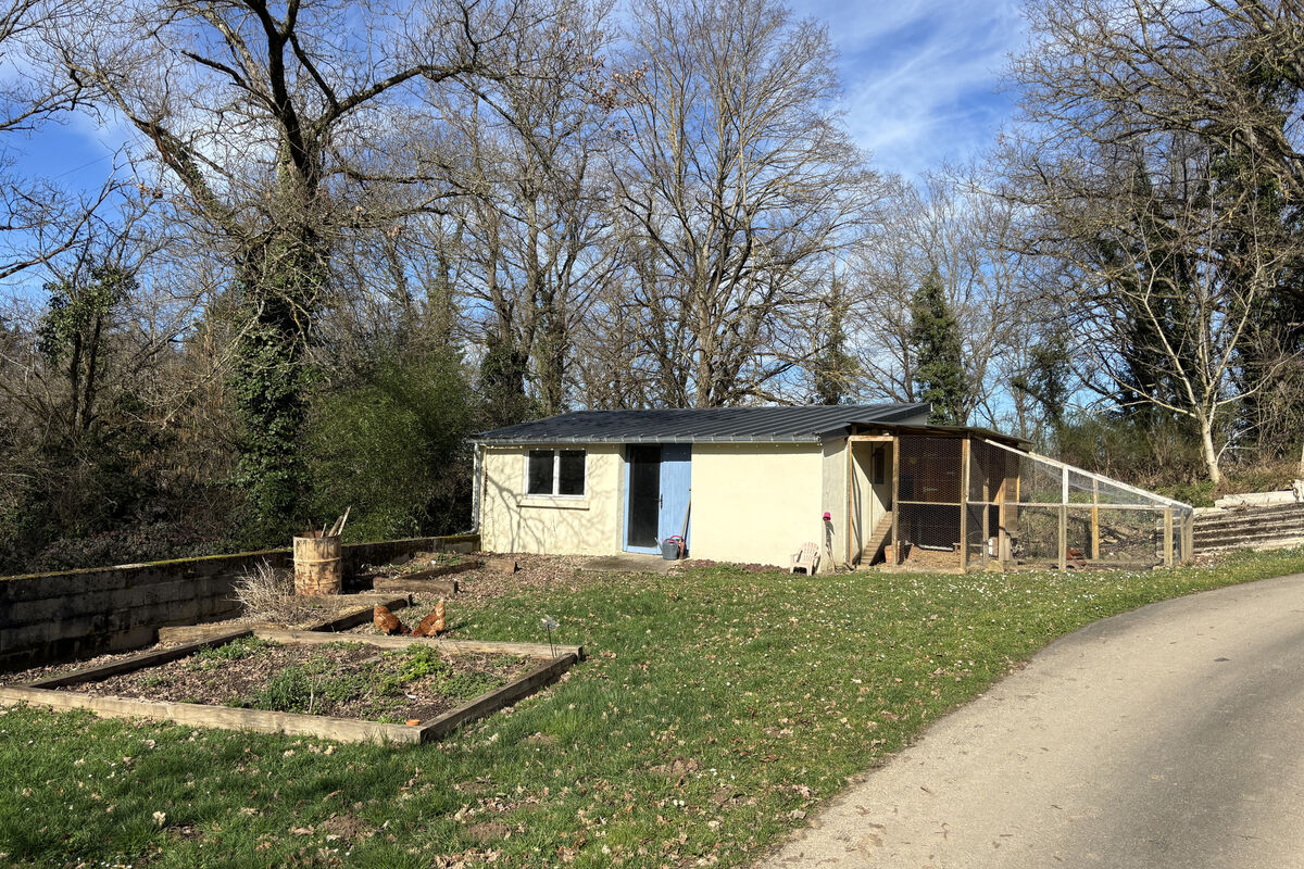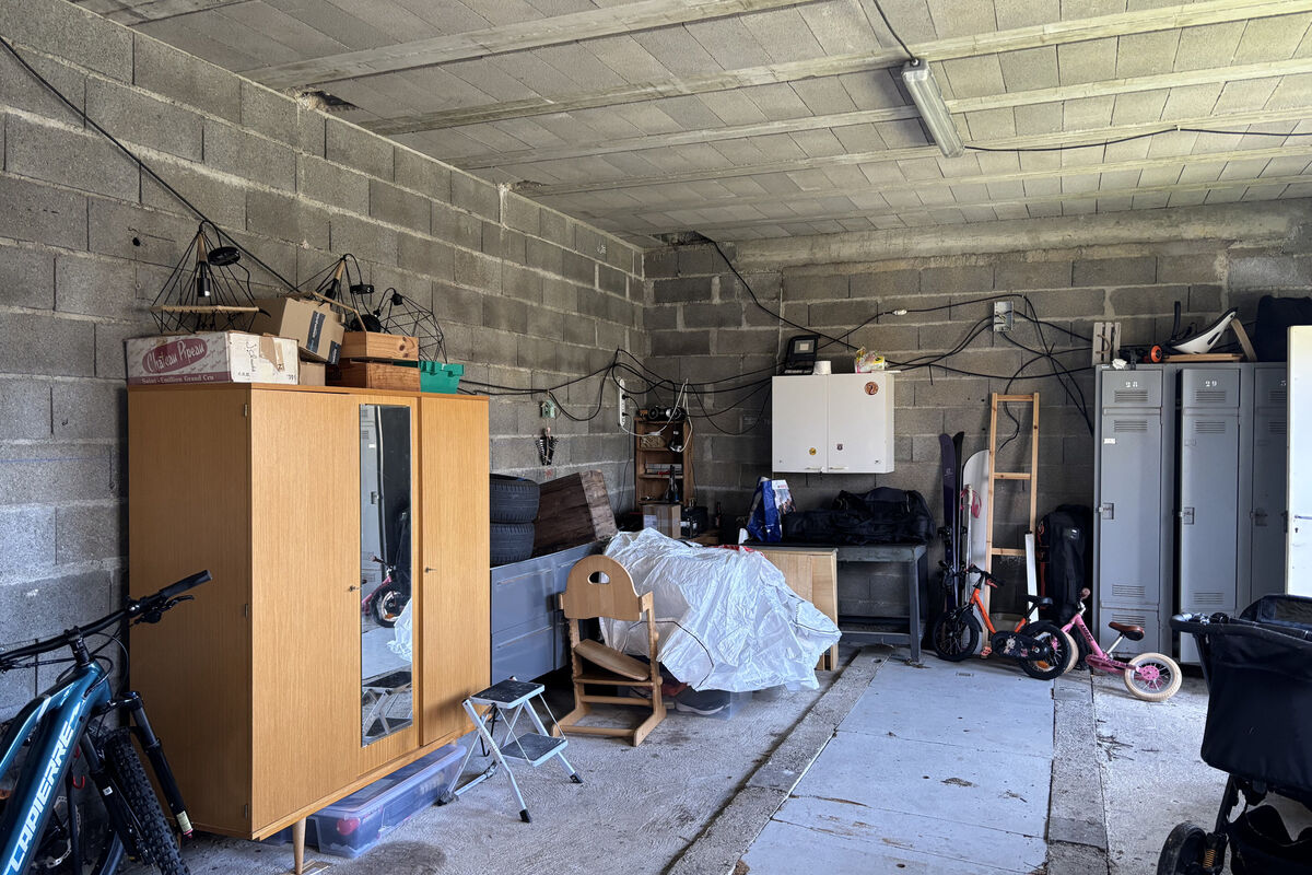 De woning is voorzien van witte PVC-luiken en een dak in correcte staat. Aan het huis is een kleine dependance, en op het terrein bevinden zich een vrijstaande garage van bijna 40 m², een tuinhuis met elektriciteit en een elektrische toegangspoort.