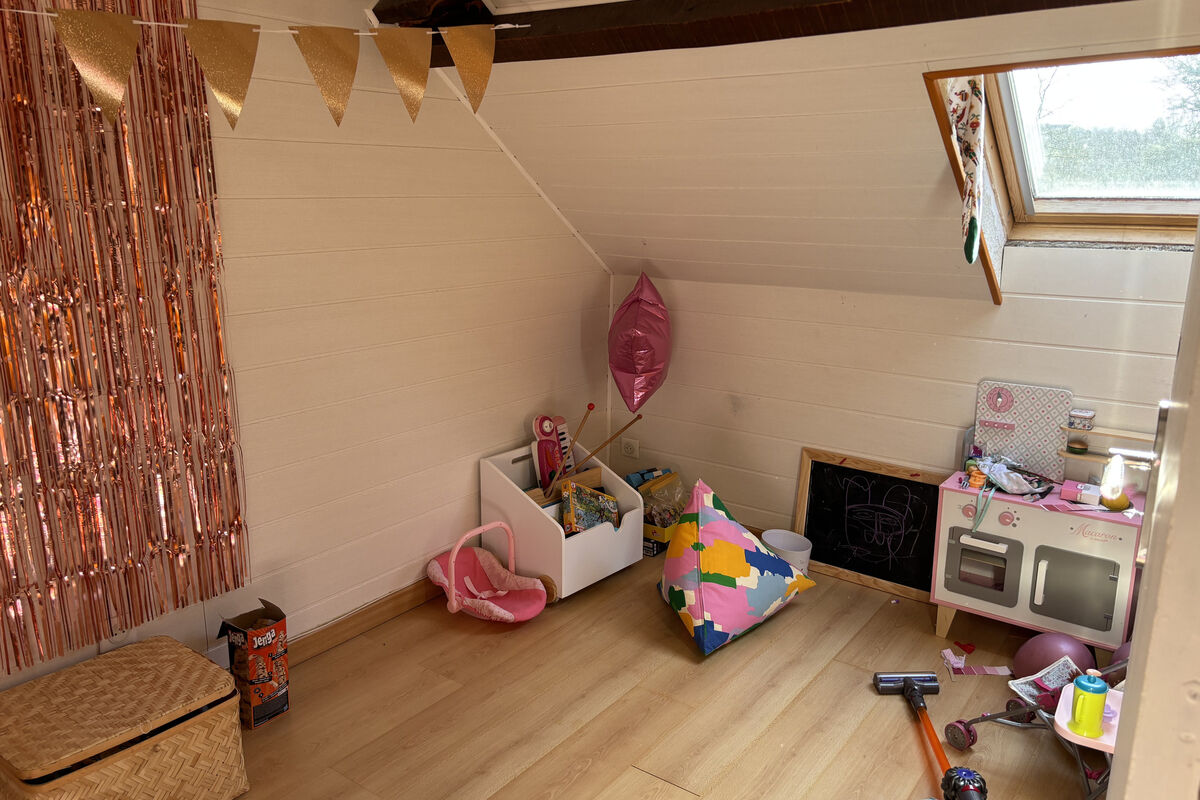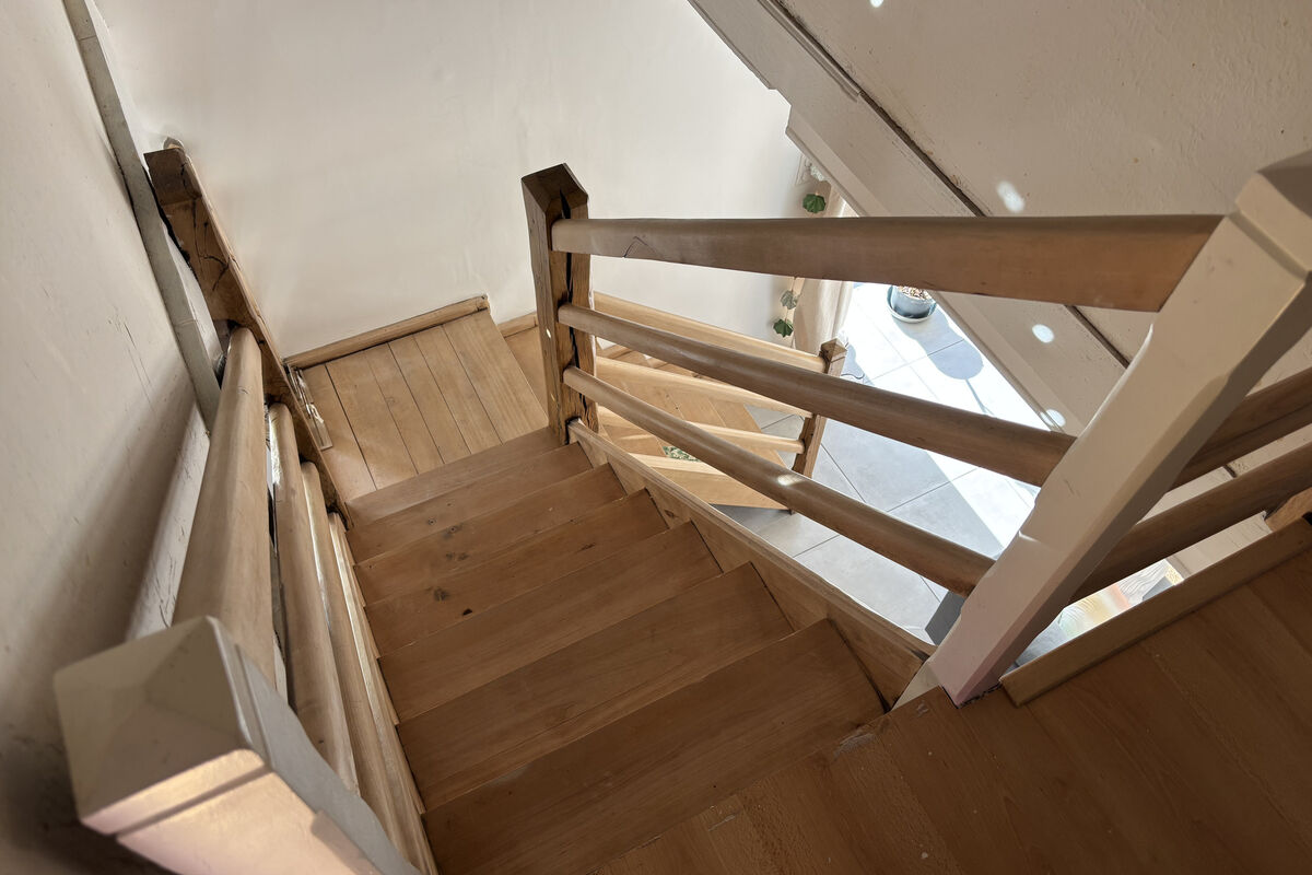 Op de bovenverdieping is er een kleine overloop met rechts een kamer van 5 m² en links een kamer van 7,7 m², die eenvoudig als extra slaapkamer kan worden ingericht.
