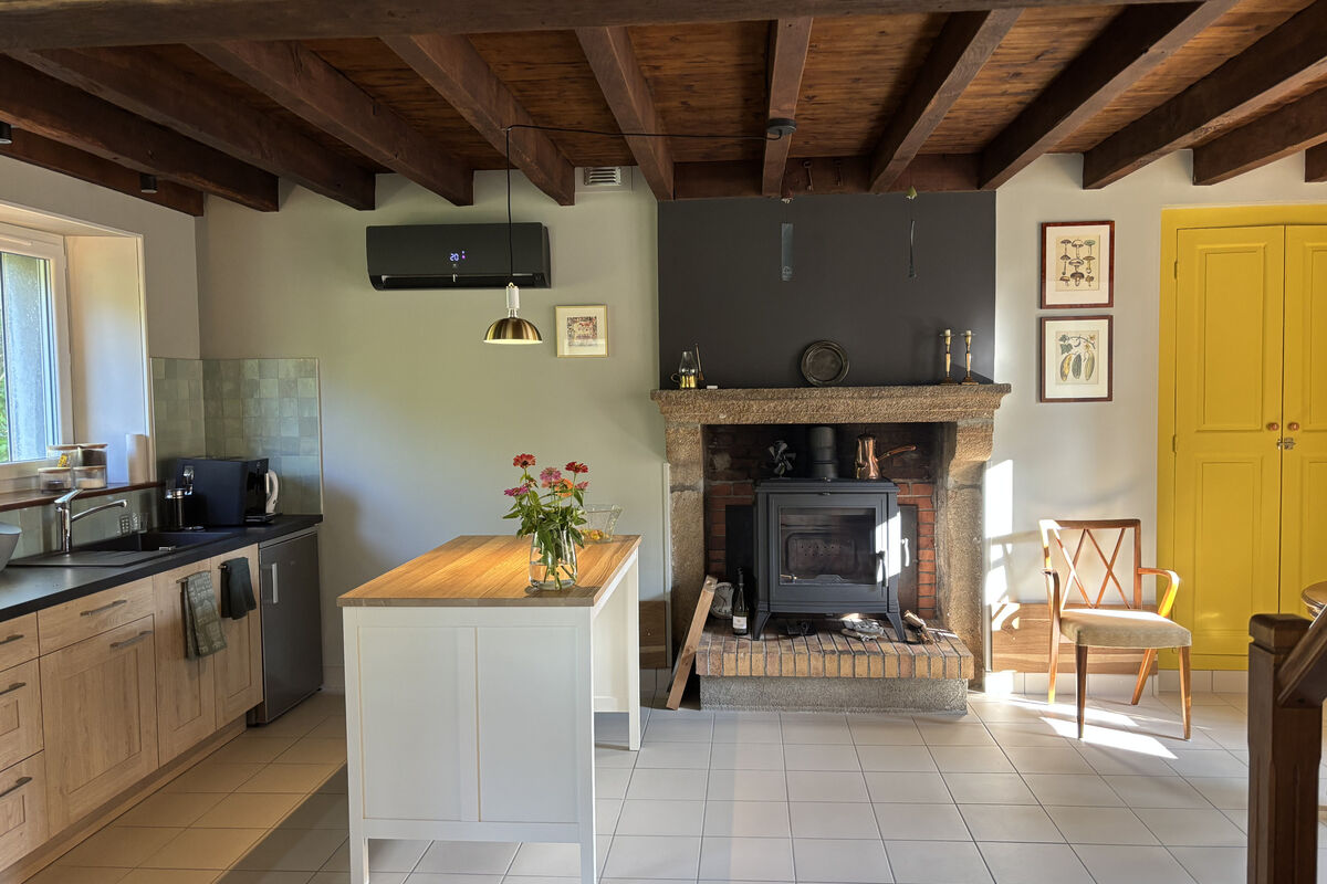 Er is een ventilatiesysteem in de keuken en beide badkamers. Het dak verkeert in goede staat, evenals de houten luiken. De woning beschikt over een ruime garage en is recent gerenoveerd waarbij authentieke Franse details behouden zijn, zoals de balkenplafonds en de karakteristieke schouw rondom de houtkachel.