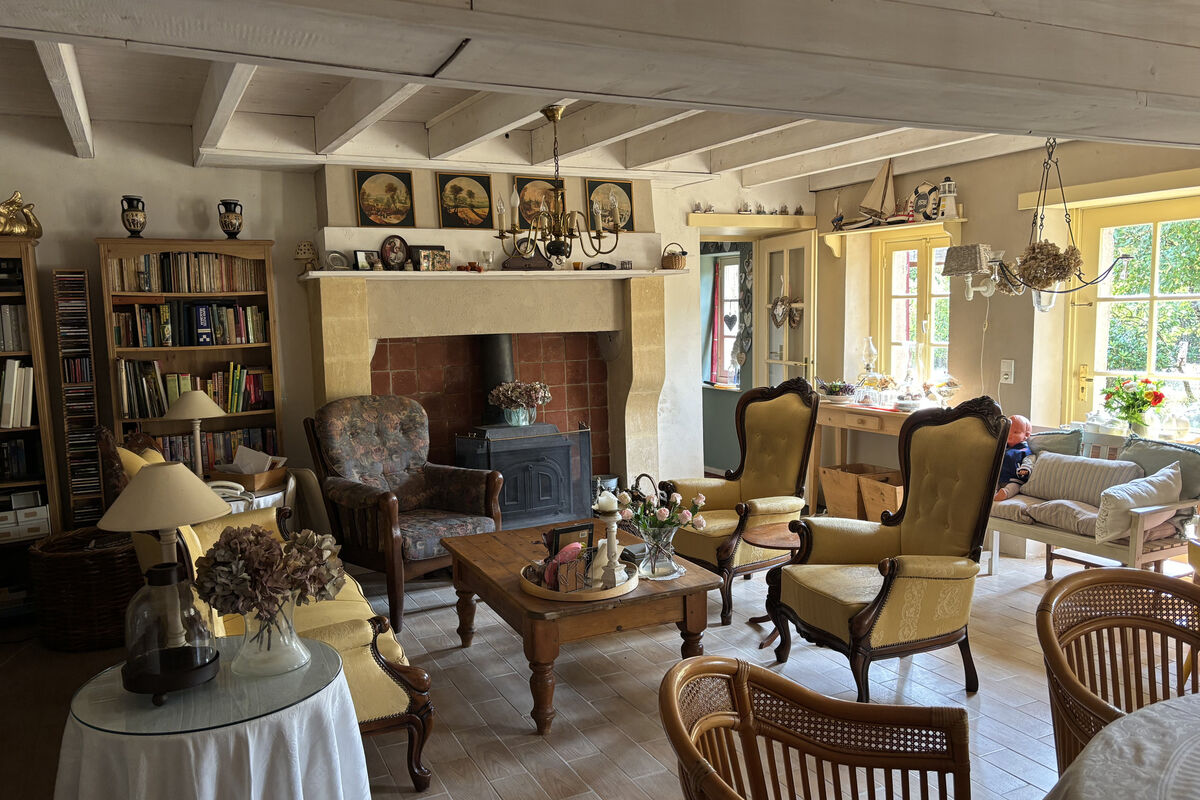 Links van de entree is een doorgang naar de woonruimte, verdeeld in zit- en eetkamer, met veel lichtinval, een mooie tegelvloer, een balkenplafond en een houtkachel. Openslaande deuren leiden naar een hal die op zijn beurt toegang geeft tot buiten en tot een tweede slaapkamer met eigen buitendeur. Hier bevindt zich ook een tweede toilet en een tweede badkamer met dubbele wastafel en een ruime douche.