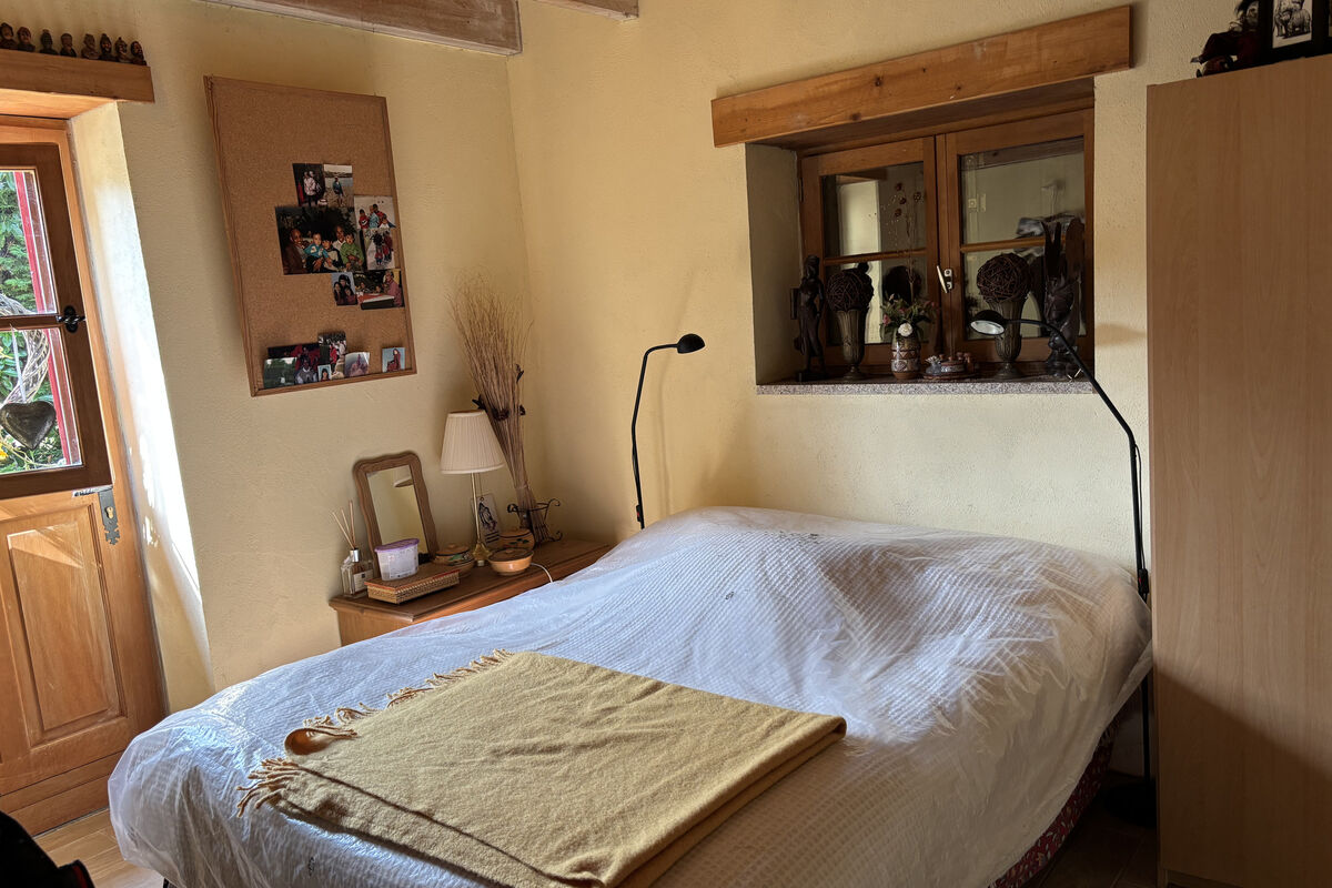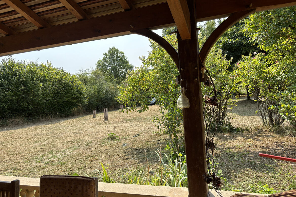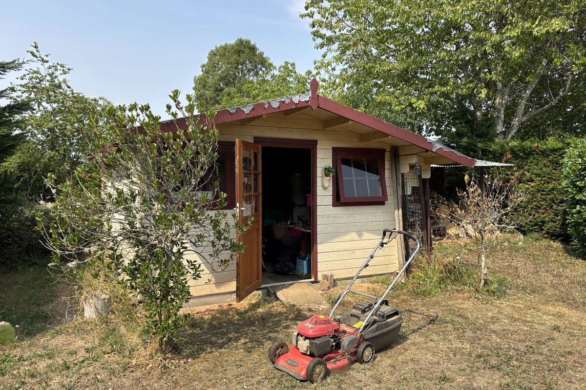 Buiten beschikt de woning over een grote tuin met fruitbomen en een tuinhuisje. Het huis ligt rustig aan een pad zonder directe buren, maar is niet afgelegen. De woning is voorzien van centrale verwarming op gas, houtkachels, houten luiken, grotendeels enkel glas en een dak in goede staat. De muren zijn van authentiek steenwerk (muur en pierre) wat de woning extra charme geeft.
