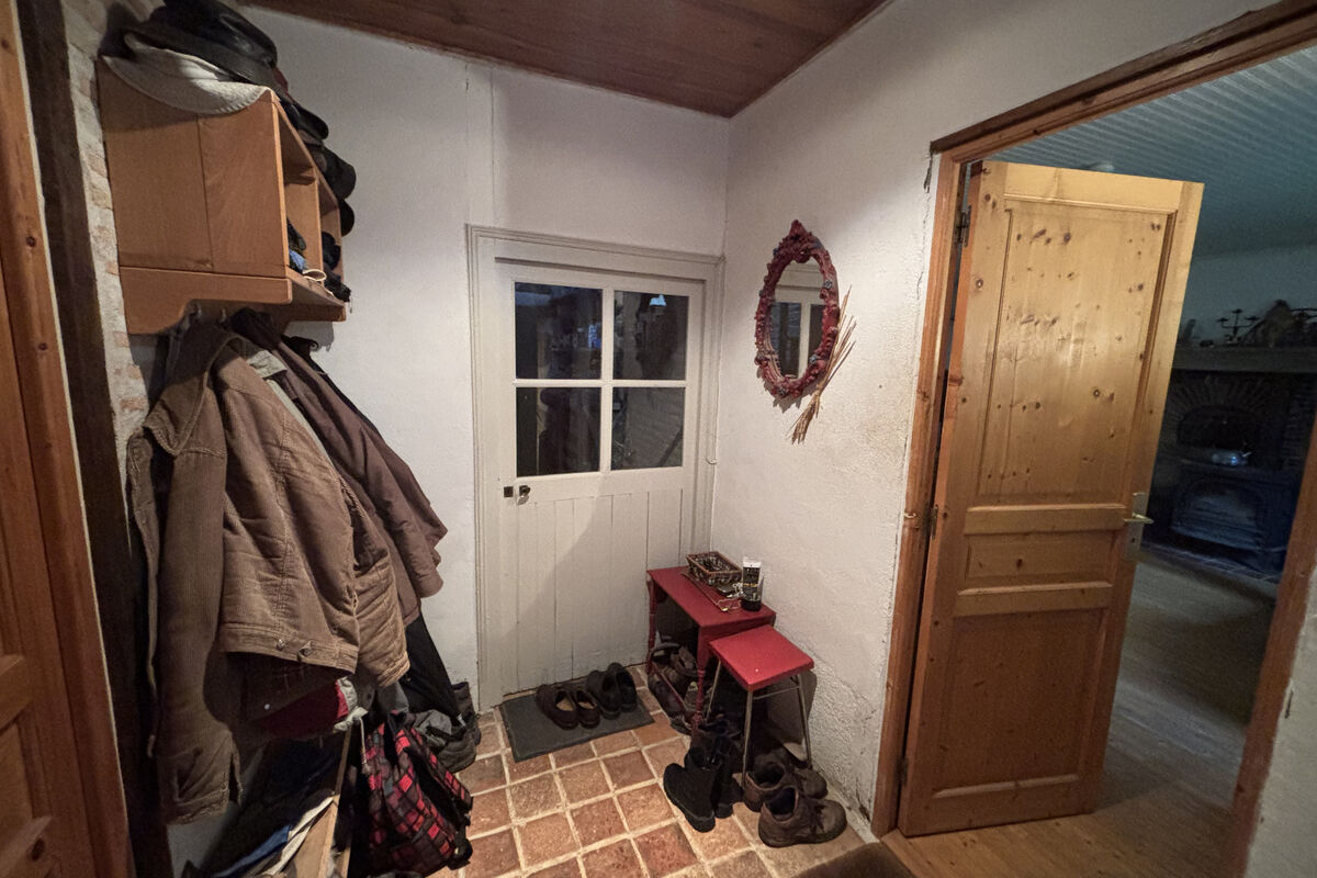 U komt deze woonboerderij binnen in de hal met de authentieke tometten vloer met aan uw linkerhand een grote slaapkamer met een gaskachel en houten vloer.