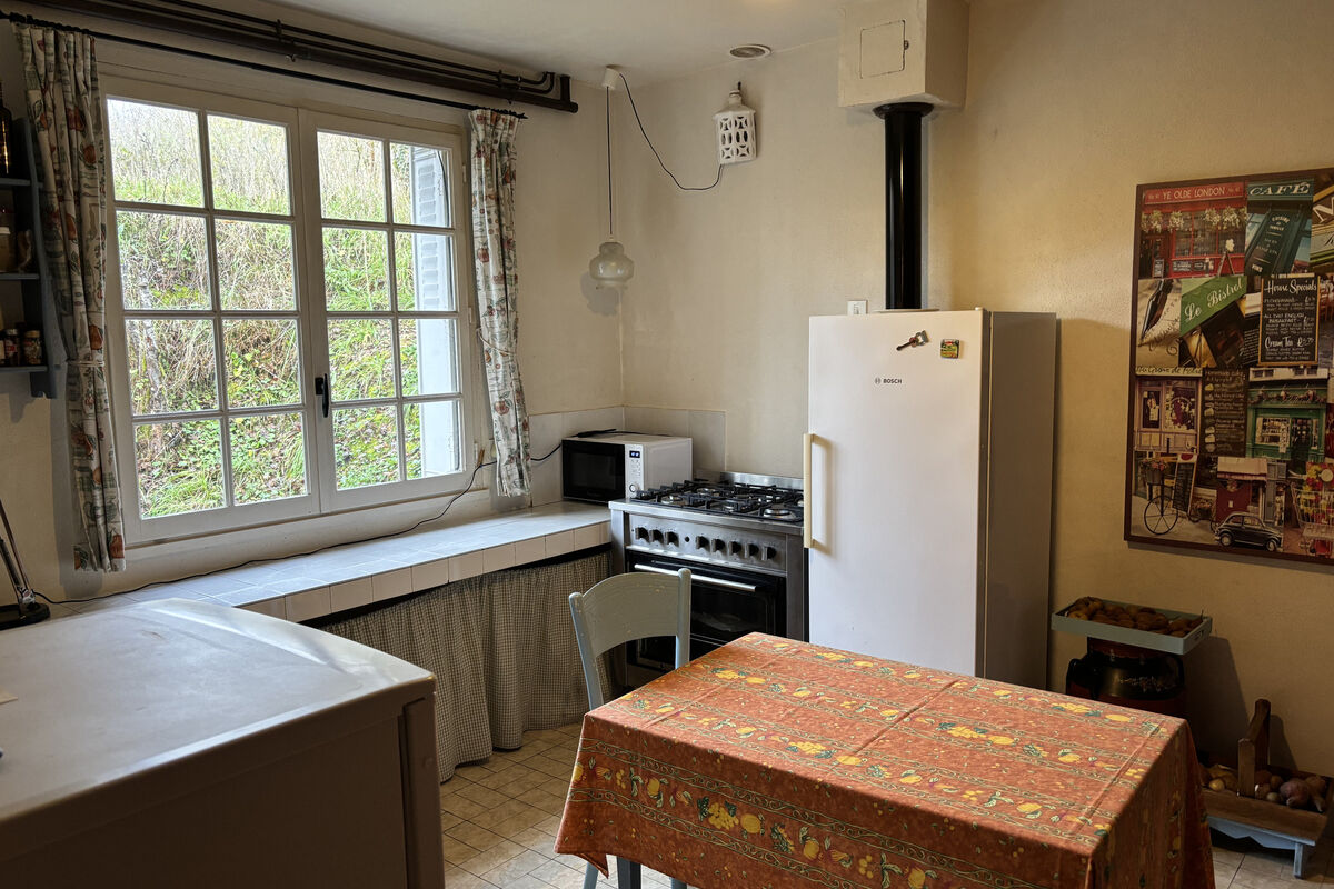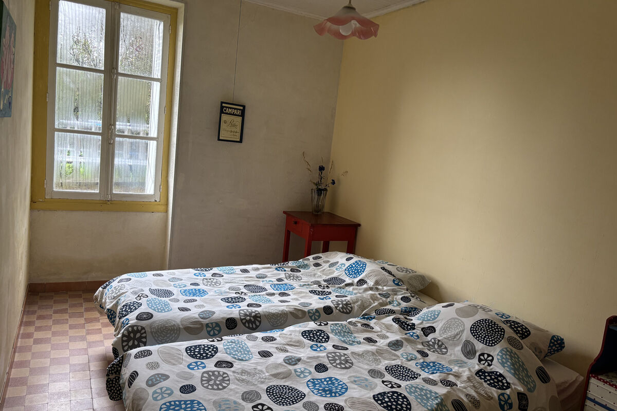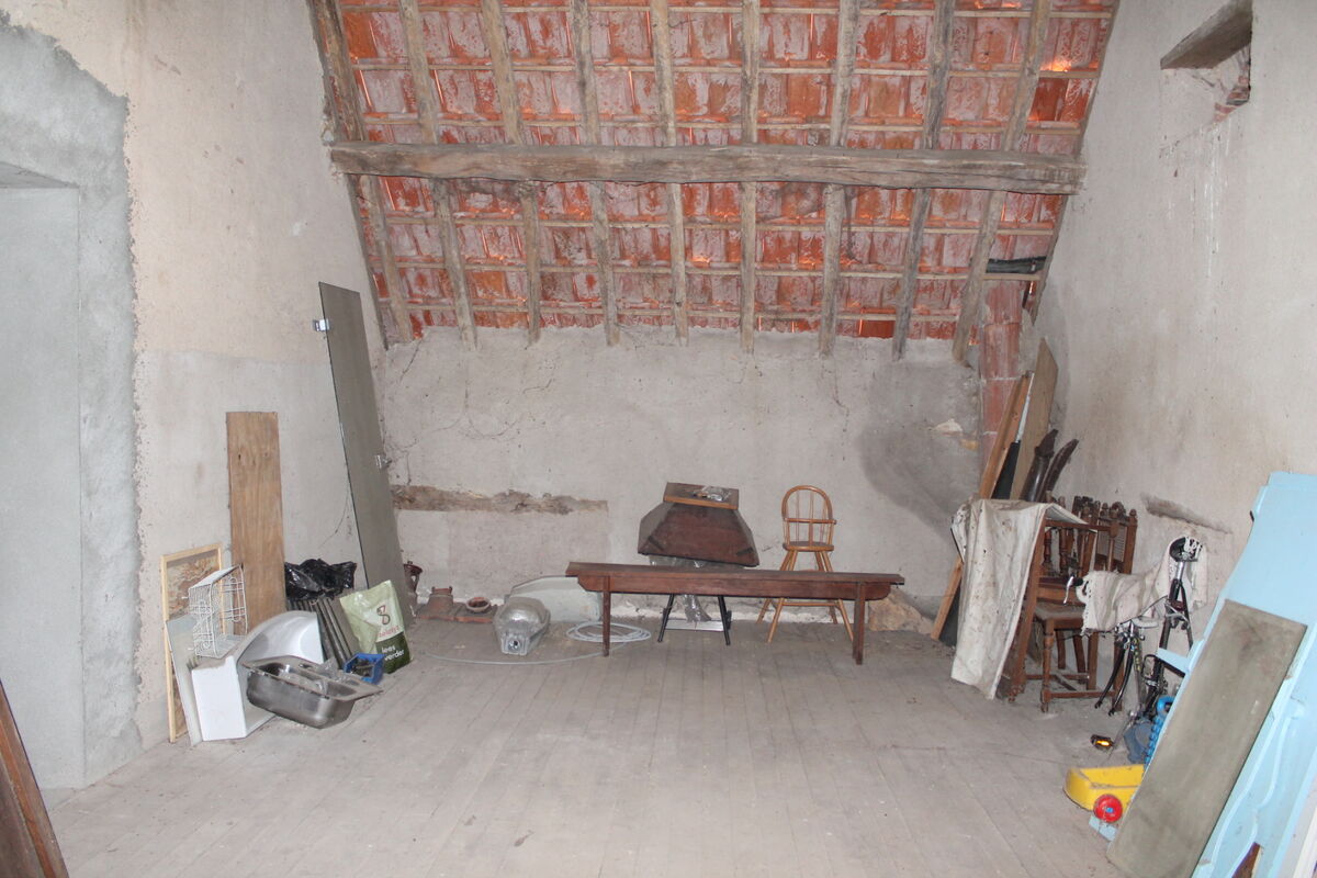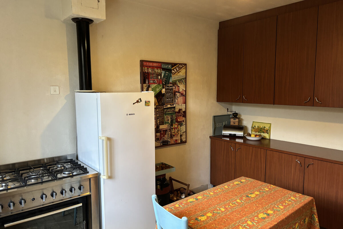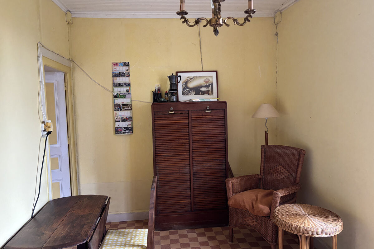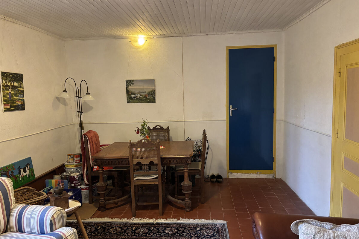 Beneden in de aankomsthal gaat u links naar het tweede woongedeelte van het huis waar nog een bijkeuken/eetkamer waar verwarmd kan worden met een houtkachel en 2 slaapkamers, een bureau en een ruimte die als zitkamer gebruikt kan worden. Overal nog de originele tegeltjes op de vloer. Hier zou u één kamer van kunnen gebruiken voor een eigen badkamer met toilet beneden.
