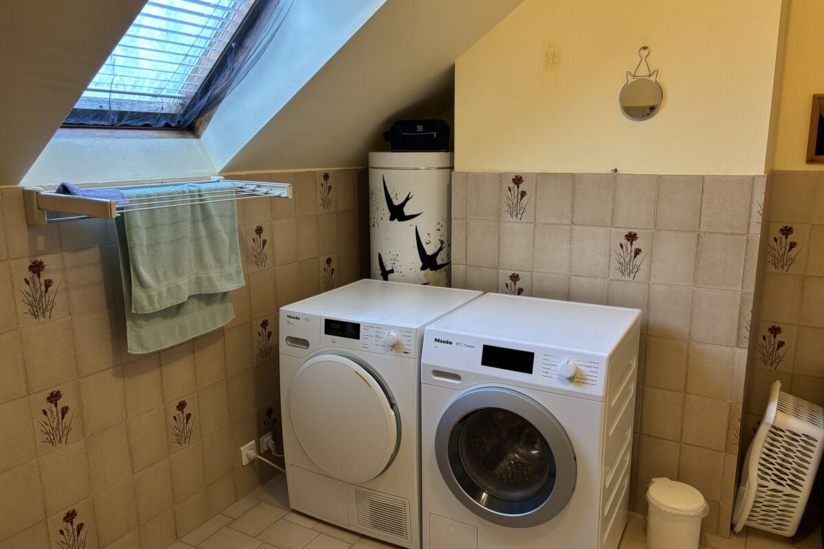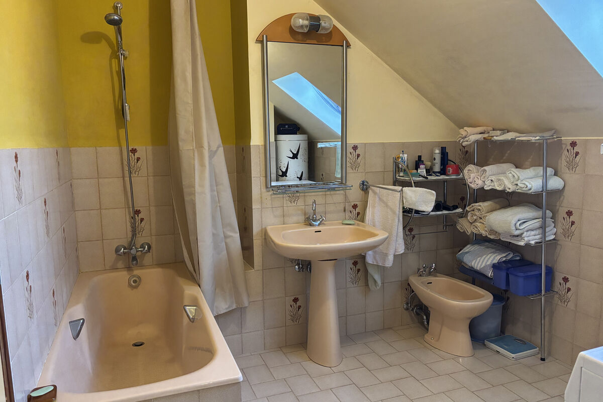 In de ruime aankomsthal is een toilet en de fijne stenen luie trap naar de bovenverdieping. Op de bovenverdieping zijn twee echt ruime slaapkamers met inbouwkasten wanden,een badkamer met ligbad, bidet en wasmachine aansluiting en een apart toilet.