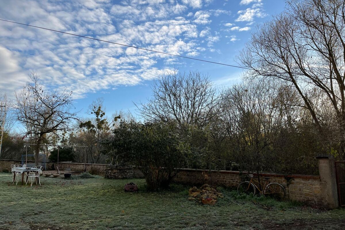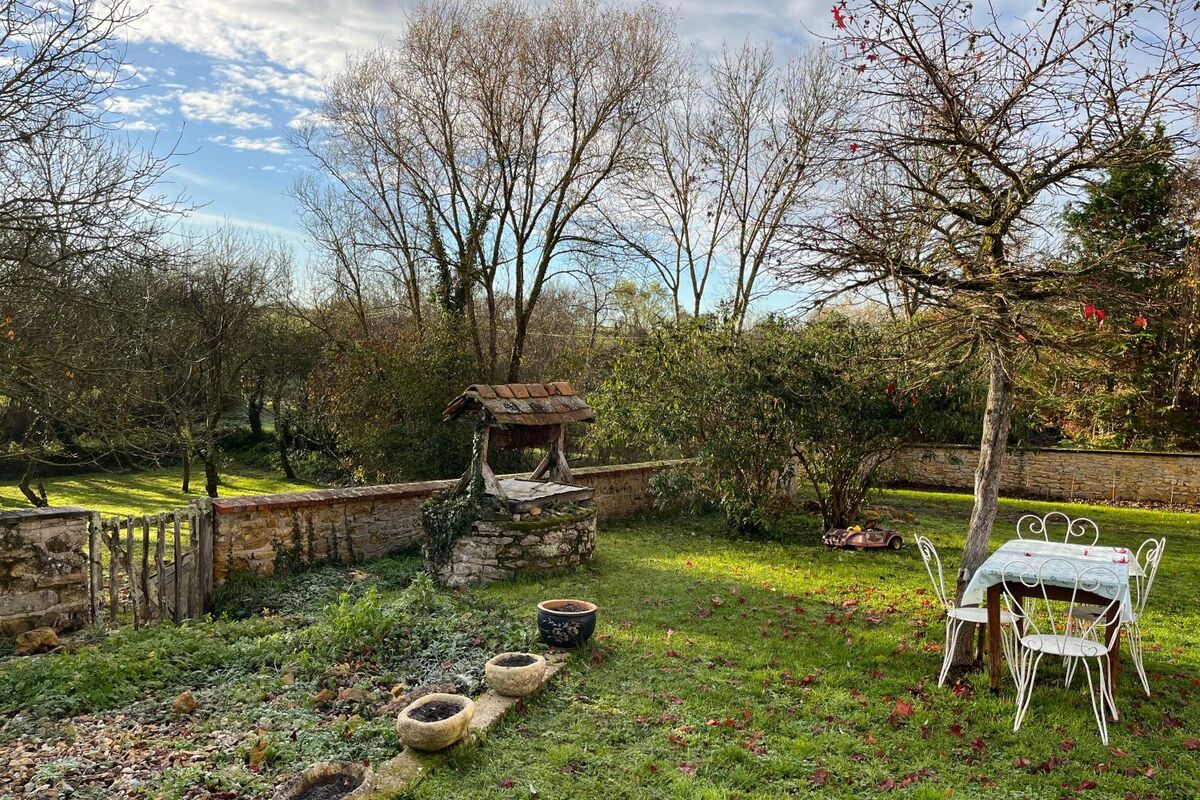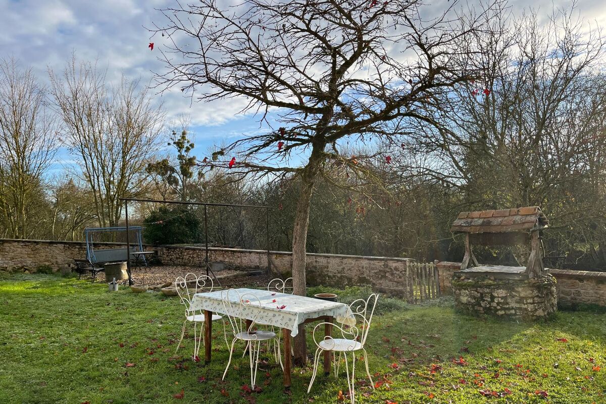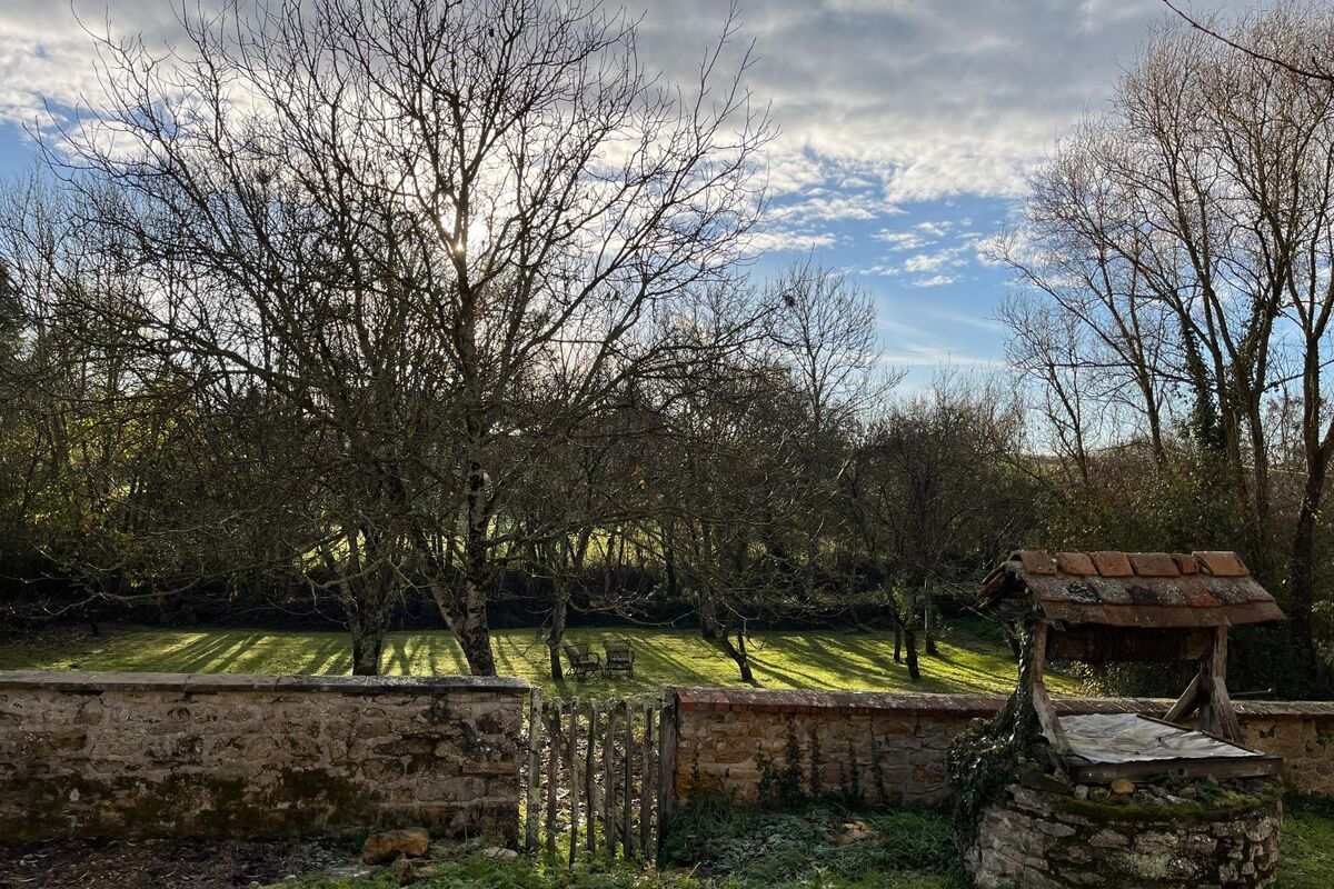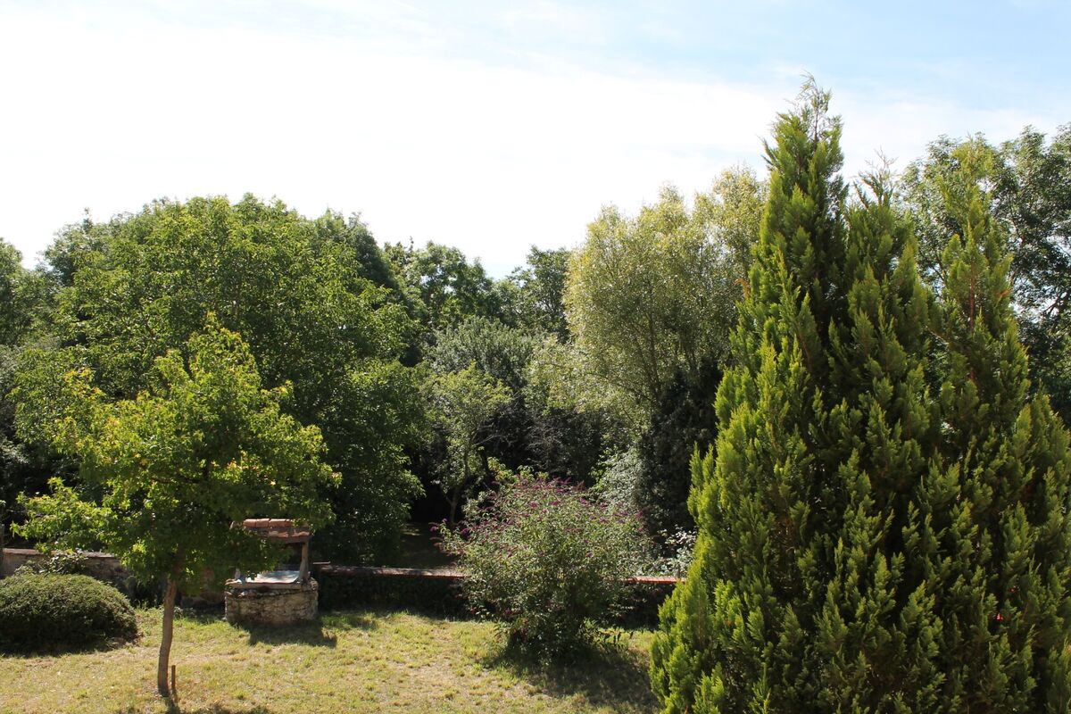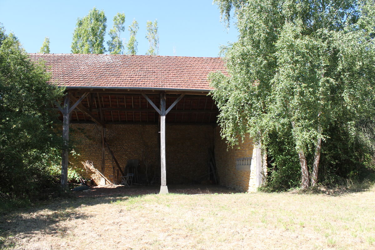 Buiten op het terrein voor het huis is een gezellig terras met waterput en met een klein stenen trappetje komt u in de boomgaard met verschillende fruit/noten bomen. Aan de linkerkant van het huis staat een grote schuur, deze is echter in slechte staat en zal gedeeltelijk afgebroken moeten worden en weer hersteld moeten worden.